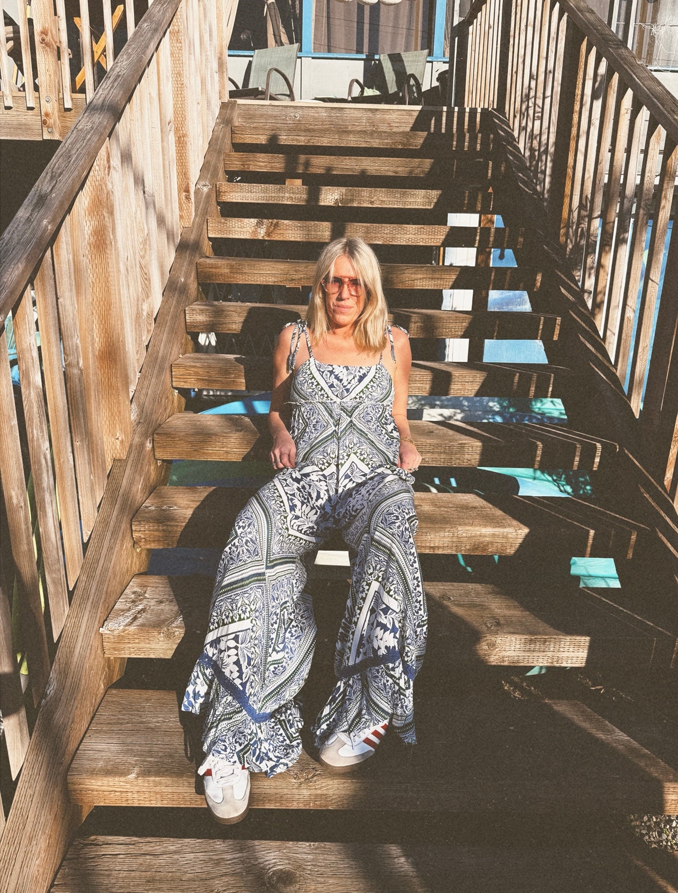Easy, breezy, and made for sun-soaked days, the Desert Mosaic wide leg jumpsuit brings effortless boho charm with a western-wanderer spirit. Featuring a lightweight flowy silhouette, delicate straps, and an intricate blue-and-green mosaic print, this jumpsuit moves beautifully with every step. The relaxed empire waist creates a flattering shape while keeping it comfortable enough for warm days, travel, markets, or patio nights.