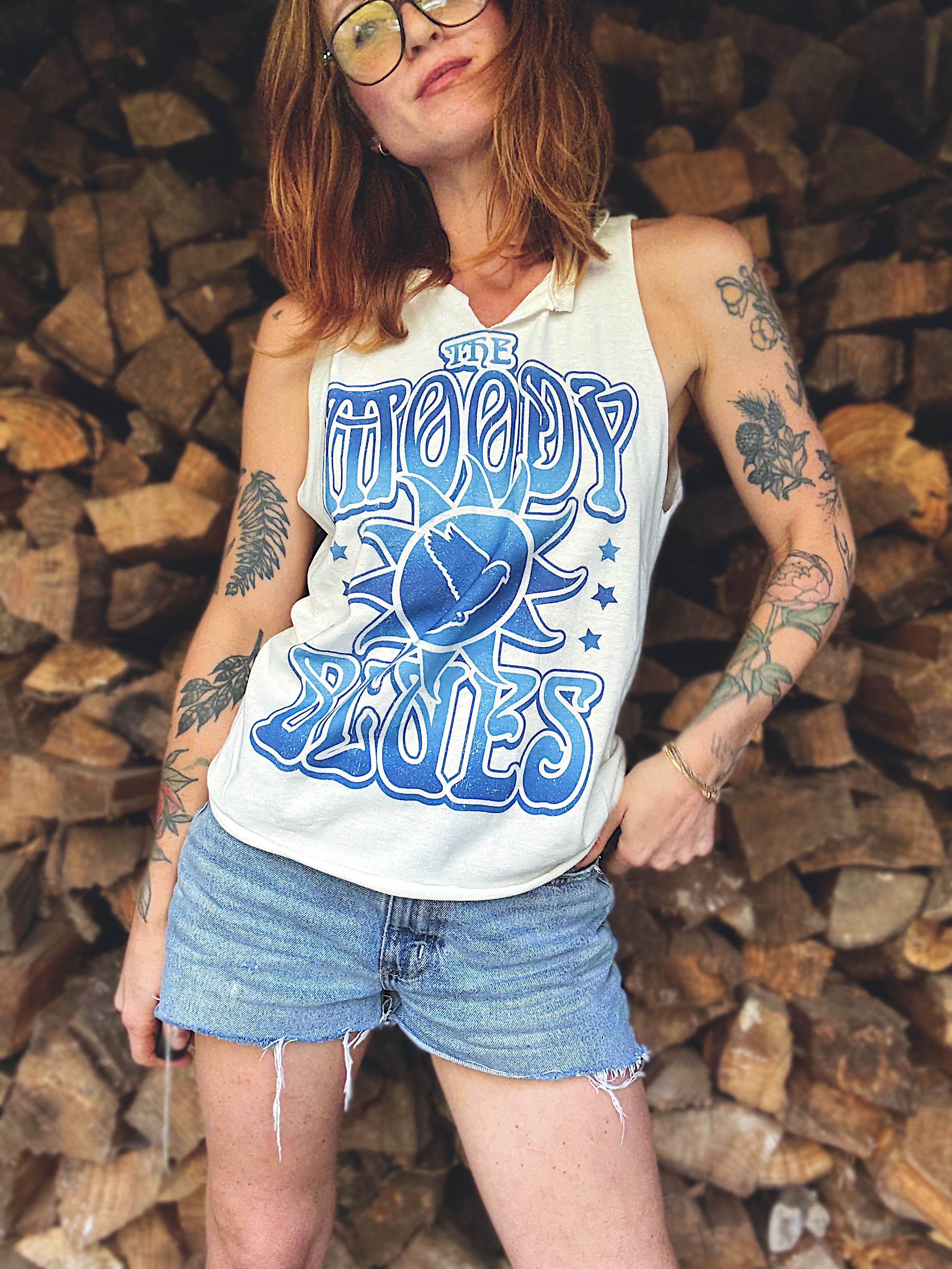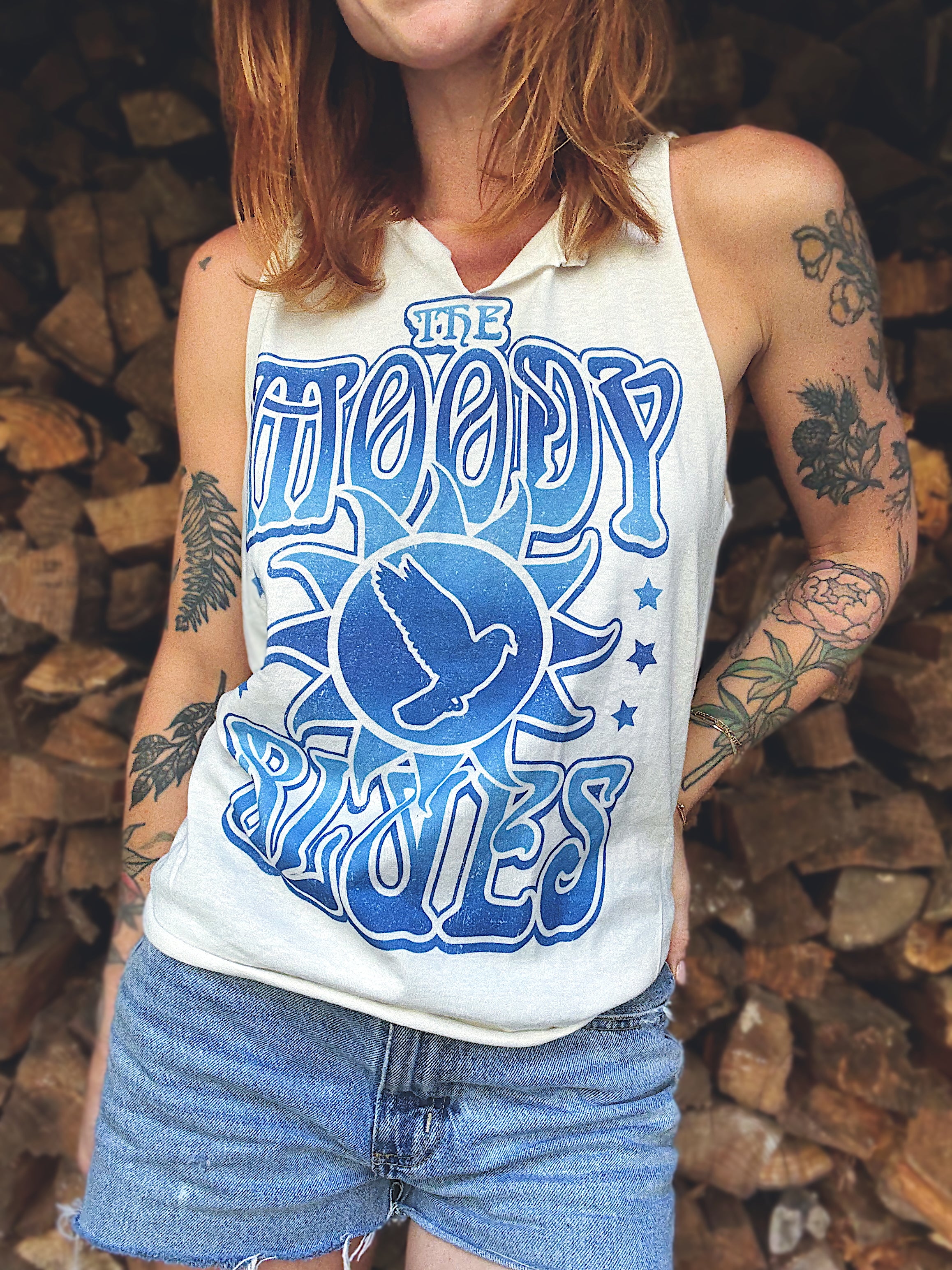 Custom Chop Shop Moody Blues V-neck muscle tank.