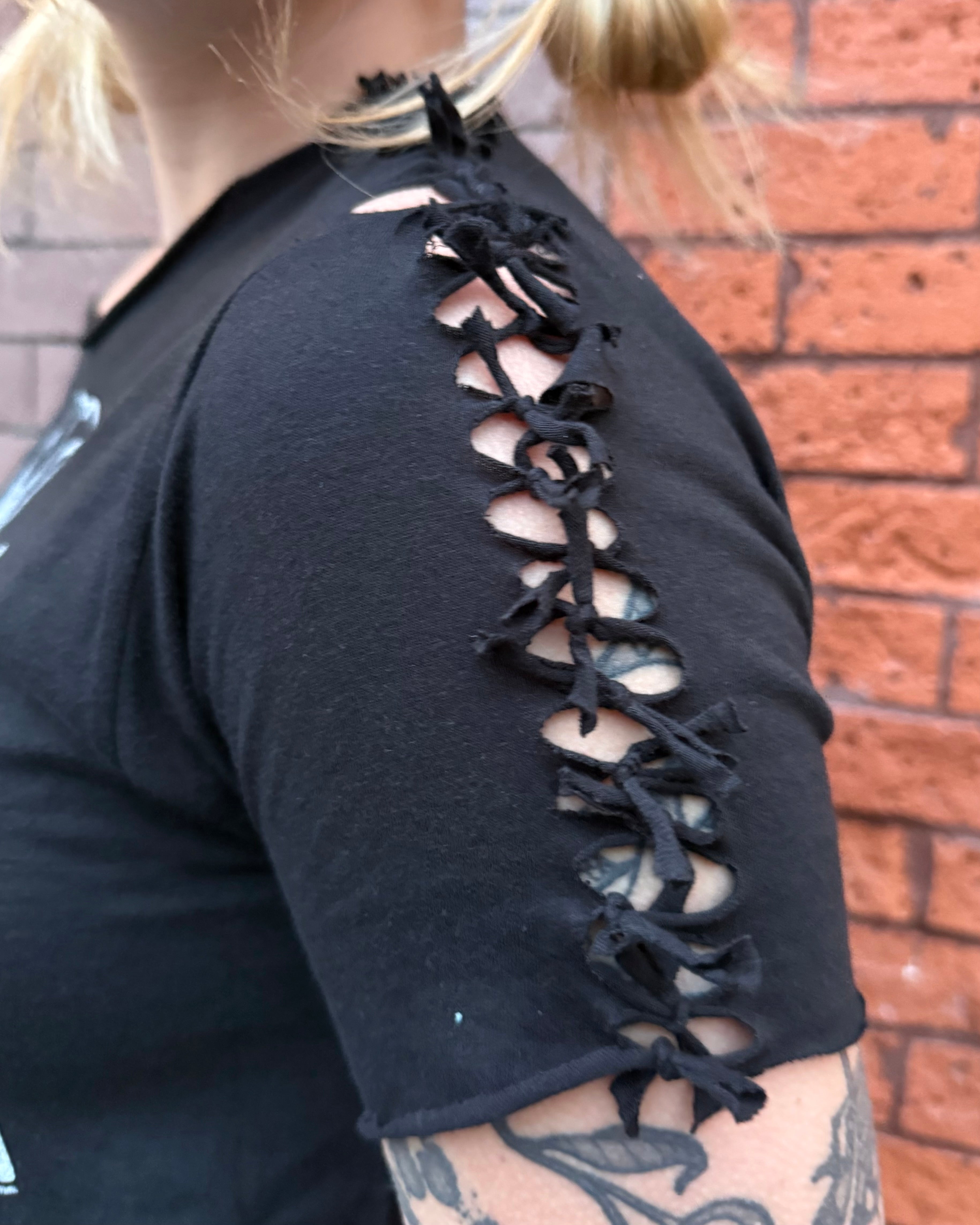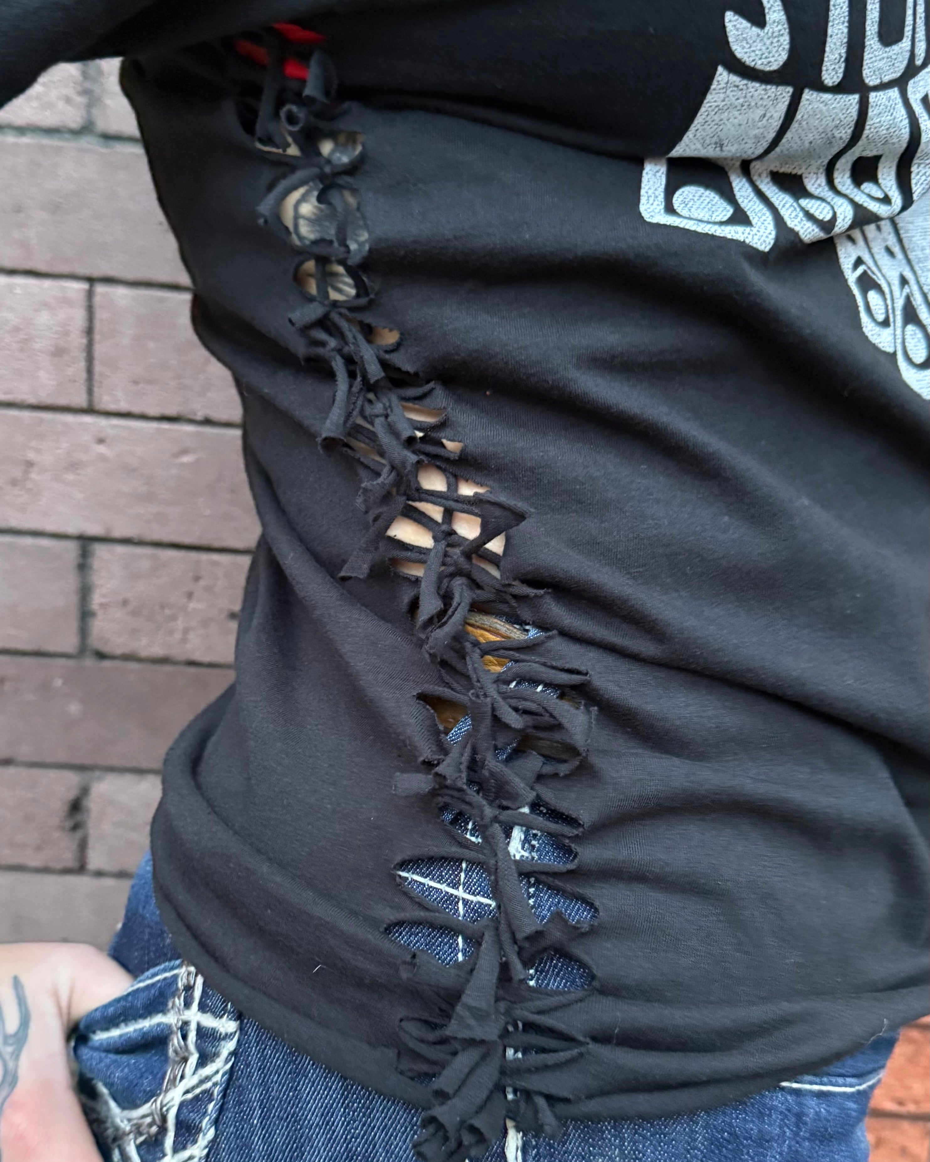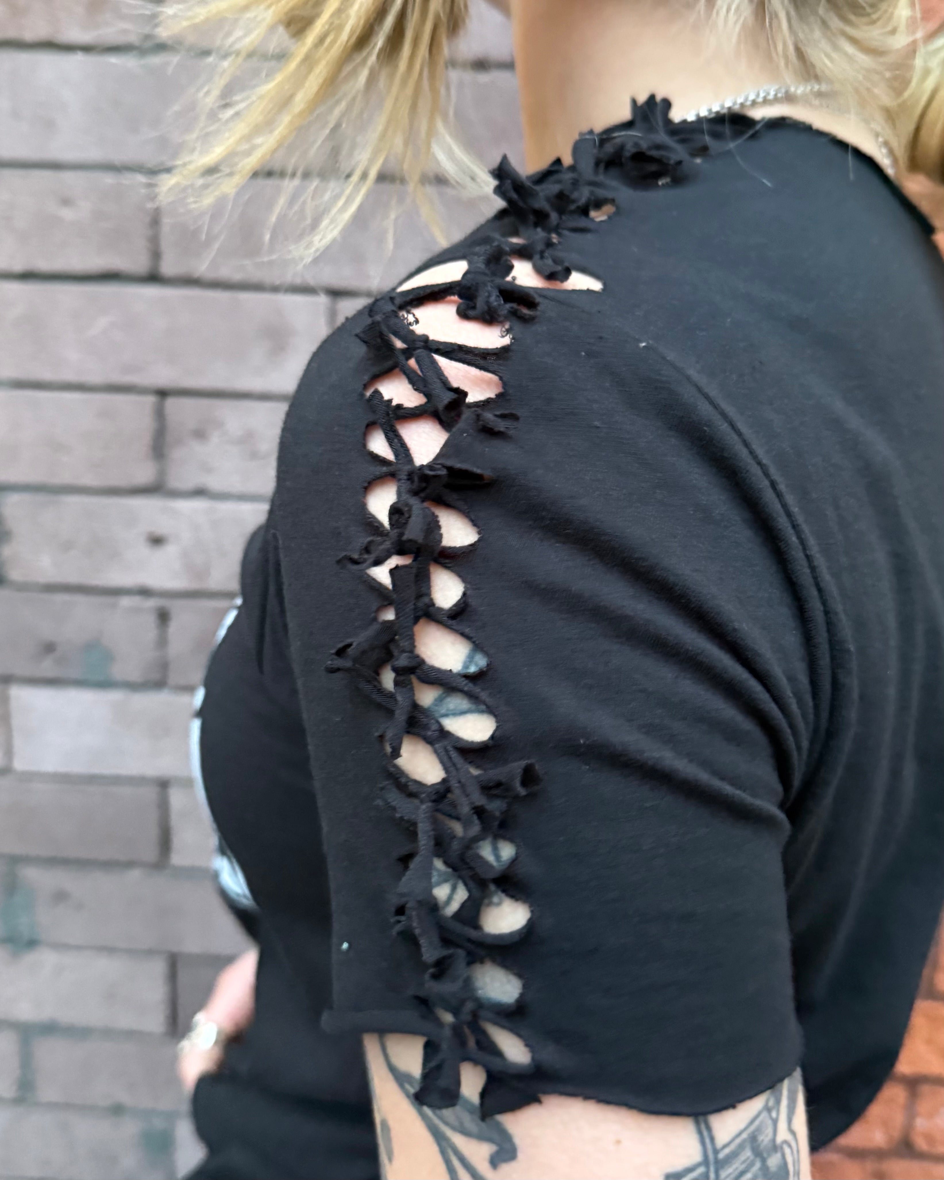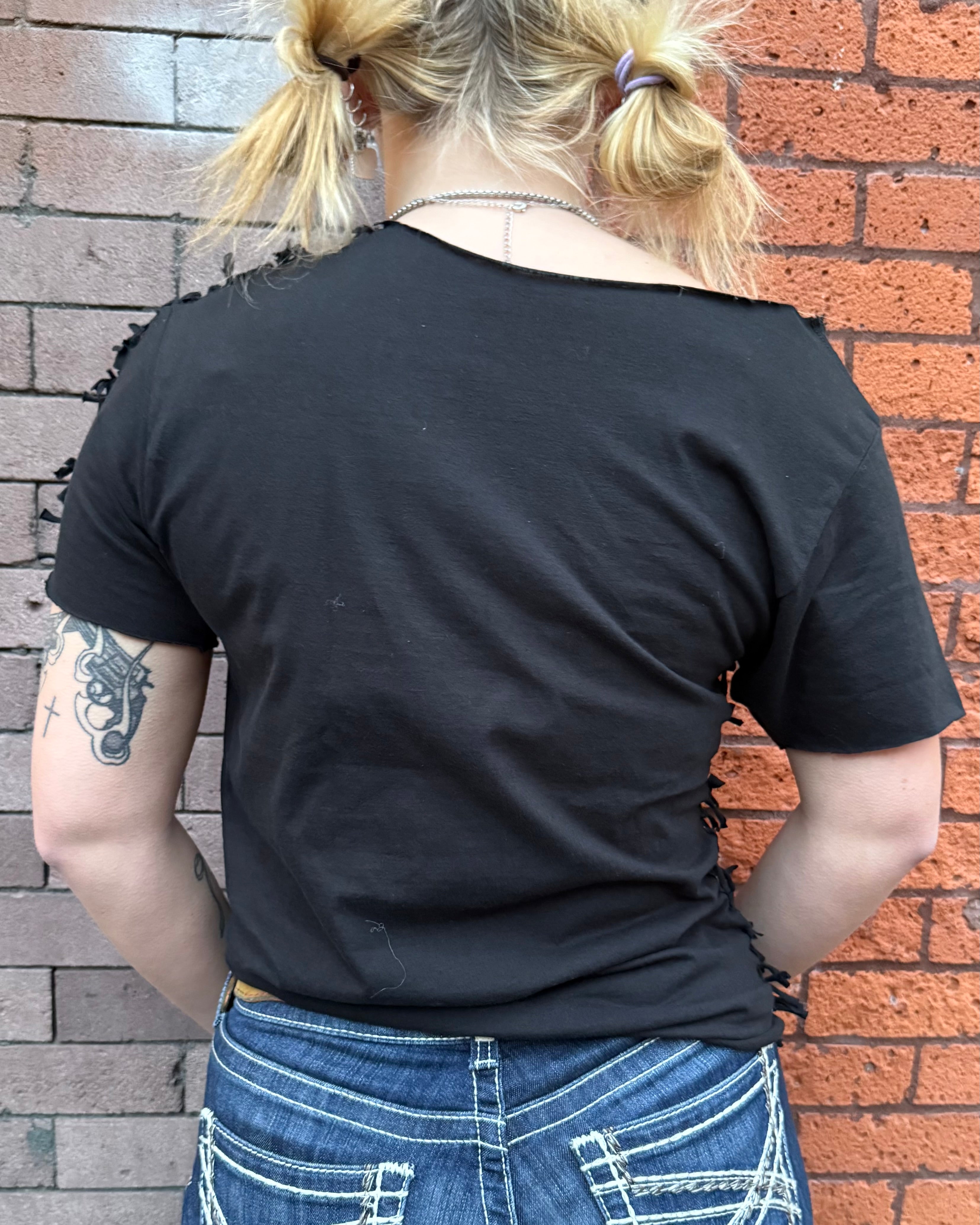 All Items are done in house. Our Chop Shop features one of a kind distressed, bleached, and dyed products done by one of our very own team members!