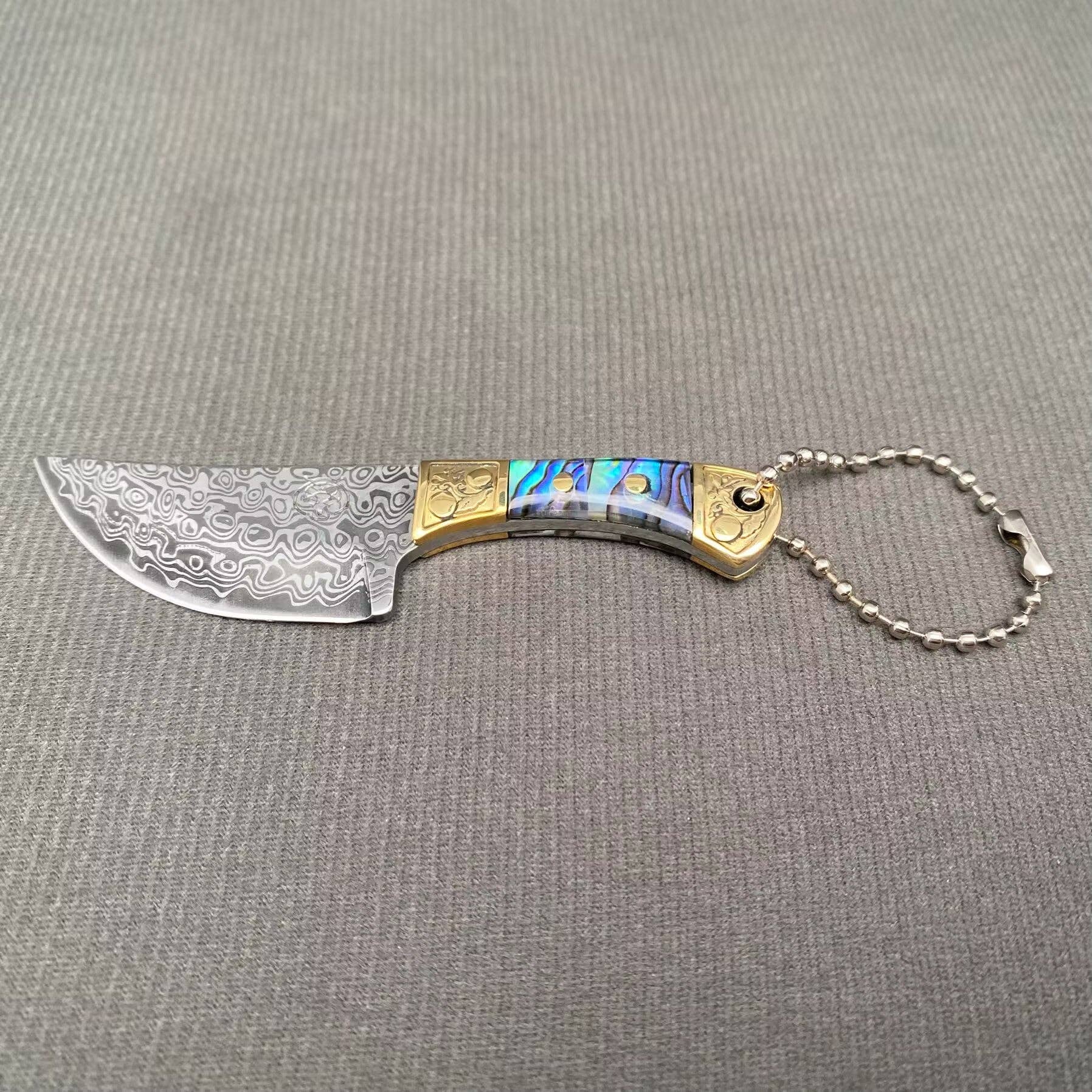 Our On The Edge mini abalone shell or resin handle knife is the perfect accessory. Both function and style, this small but mighty knife can open packages and elevate your keychain. With a unique abalone shell or resin handle, keychain attachment, and stainless steel blade it's a sturdy little piece. Don't forget it's handy protective cover! Provided with knife!